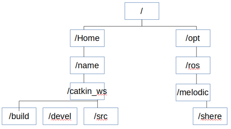 제일 상위 / (루트) 디렉토리 부터 ros의 버전인 /melodic 하위의 /shere 디렉토리에는