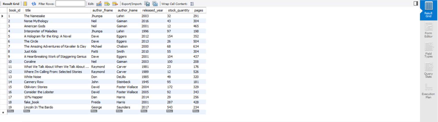 author_fname 에 'da'가 들어가 있는 데이터는 많지만, 위의 코드를 실행시켜면, 아무것도 조회가 되지 않는다.