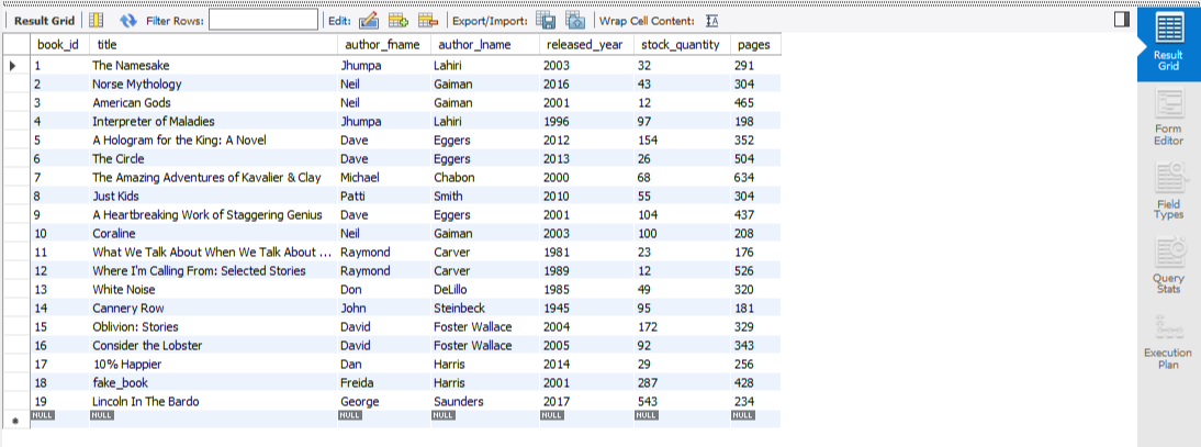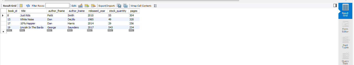 -- books 테이블에서 released_year 가 2017, 1985, 2010, 2014, 2008 이 아닌 데이터를 찾는다.