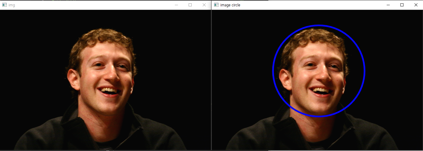 - thickness = 선의 두께 ( -1 설정시 원의 안쪽으로 색이 채워짐 )
